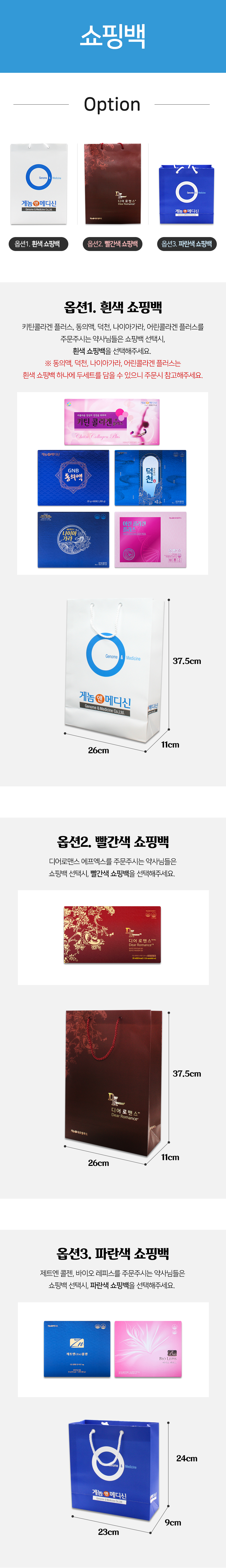 흰색, 빨간색, 파란색 쇼핑백 선택